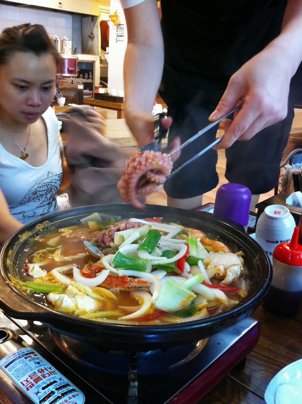 喔這道是我愛的海鮮鍋,有海瓜子還有大章魚,熬的很夠味,煮到最後會來加麵條,到底要把客人弄得多飽 |