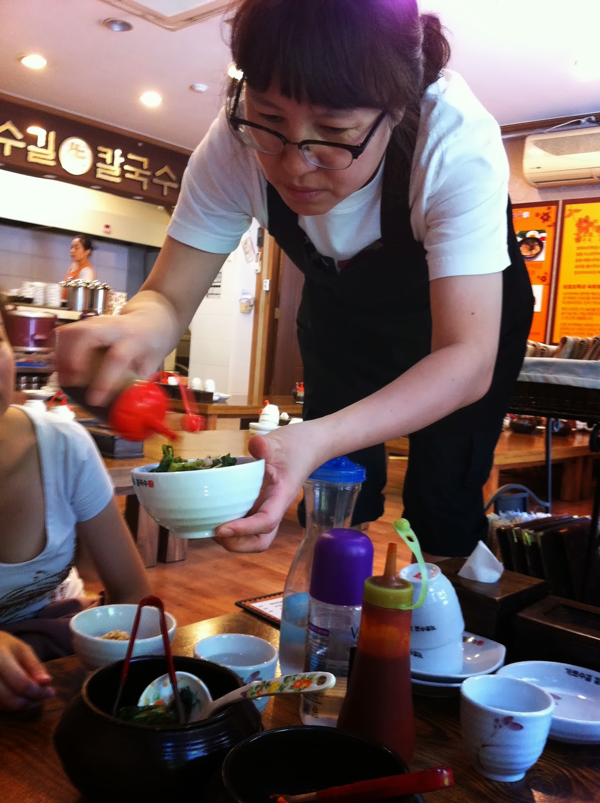 這間餐廳主打的是養生,餐廳非常乾淨,地板沒有油膩感,光線明亮,廚房就在後面,可以讓人吃得滿安心的感覺。麥麩麵疙瘩+泡菜拌飯+海鮮鍋,一人約莫台幣$300元,飽的要死~